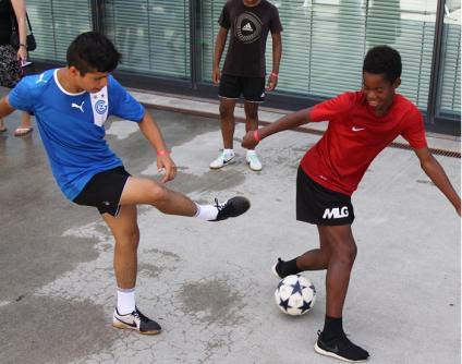 Mit einem Street-Soccer-Turnier feierten Einheimische und Flüchtlinge gemeinsam den Flüchtlingstag 2016 vor dem Bundeshaus in Bern. Mehr dazu hier